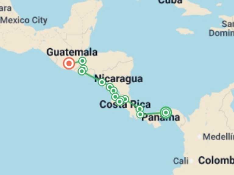Panama City, Antigua, Rincon de la Vieja Volcano National Park, Ometepe, Granada, Leon, San Salvador, Suchitoto, Copán Ruinas, Boquete, Bocas Del Toro, Sarapiqui, Arenal, Monteverde
