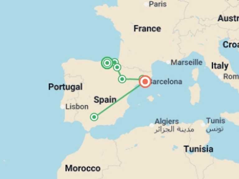 Barcelona, Bilbao, San Sebastian, Pamplona, Zaragoza, Montserrat, La Rambla