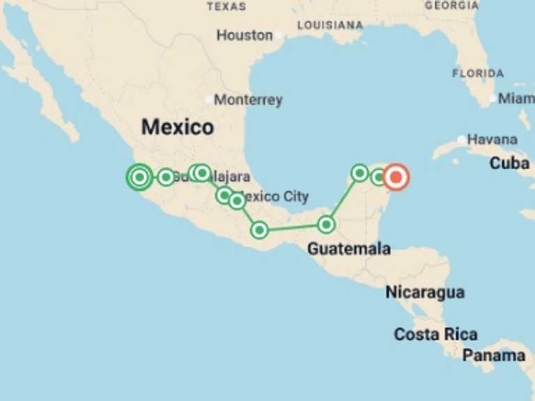 Playa Del Carmen, Puerto Vallarta, Mexico City, Puebla, Oaxaca, Palenque, Merida, Valladolid, Guadalajara, Guanajuato, San Miguel De Allende