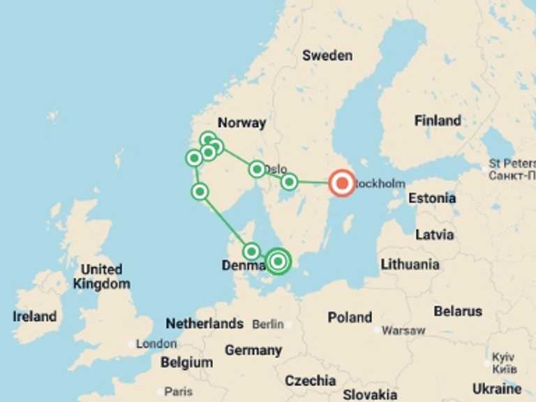 Copenhagen, Vilnius, Helsinki, Tallinn, Riga, Aarhus, Stavanger, Bergen, Balestrand, Oslo, Karlstad, Stockholm