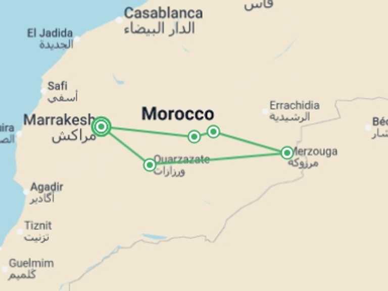 Uncover the best of Morocco on this 11-day escorted group tour for those aged 18 - 45. Begin in Marrakech, taking in highlights like the Koutoubia Mosque and Djemaa el Fna. Explore the fortified kasbah and Game of Thrones filming locations at Ait Benhaddou, ride a camel in the Sahara Desert and spend a night at a desert camp. Crash over the dunes on a 4WD adventure, learn to make fresh tagine and visit the famous Atlas Film Studios in Ouarzazate. Stay with a local family in mountainous Imlil, enjoy a scenic hike and learn to surf in coastal Essaouira, before heading back to Marrakech.