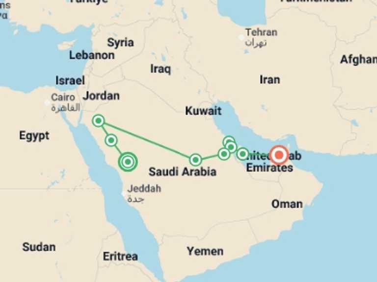 Delve into the enchanting landscapes and cultural jewels of Arabia and the Persian Gulf on this 12-day city sightseeing tour from Medina to Dubai. "Classics of Arabia and Jewels of the Persian Gulf End Dubai" caters to seniors seeking a relaxed yet comprehensive travel experience. From the ancient sites of Al-ula to the stunning Bahrain Fort and dynamic UAE cities, each stop is designed for comfortable exploration. Included accommodation, transport, and meals ensure a worry-free journey. The tour’s unique benefit is its seamless blend of historic marvels and modern wonders across multiple countries, allowing you to savor the region’s contrasts in a single, expertly guided tour package.