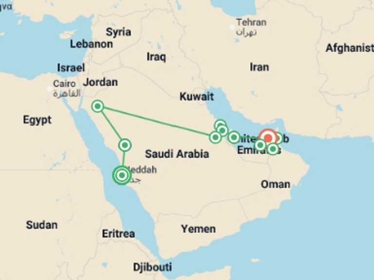 Dive into an 18-day odyssey from Jeddah to Dubai with the "Mysteries of Arabia and Beauties of the Persian Gulf" city sightseeing tour. This group trip, perfect for seniors and those favoring an easy rhythm, traverses Doha, Jeddah, Al-hofuf, and ten other destinations in the UAE and Saudi Arabia. All accommodations, transport, and meals are included, ensuring a comfortable adventure. The USP here is the tour’s impressive breadth, delivering a thorough and immersive Arabian experience across two dynamic countries.