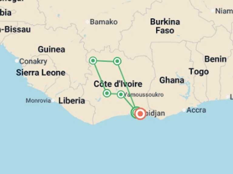 Abidjan, Yamoussoukro, Grand Bassam, Korhogo, Odienne, Daloa