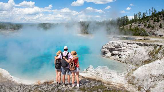 Yellowstone National Park: Yellowstone National Park. A bucket list destination and a must-see icon. Established as America's first National Park by President Grant in 1872, Yellowstone is famous for its hot springs, bubbling mud pots, vast canyons and lush forests and a variety of terrain including alpine mountains, prairies, valleys and waterfalls as well as a diversity of nature including the hydrothermal features. Explore the Southern Loop of Yellowstone with your Travel Director who shows you the must-sees and highlights, paired with background information of this huge, ever-changing national park. See the splendour of the Grand Canyon of Yellowstone, keep an eye out for bison in Hayden Valley, and witness Old Faithful blow off some steam.